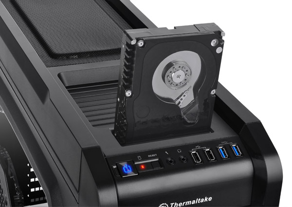 Top-mounted 2.5" or 3.5"HDD Docking Station enables blazing fast file transfer and effortless hot-swap drive replacement. Front-top panel has implemented two of latest data transfer SuperSpeed USB 3.0 ports, a HD microphone and headset jacks, plus a placement platform for users' electronic devices laying on.