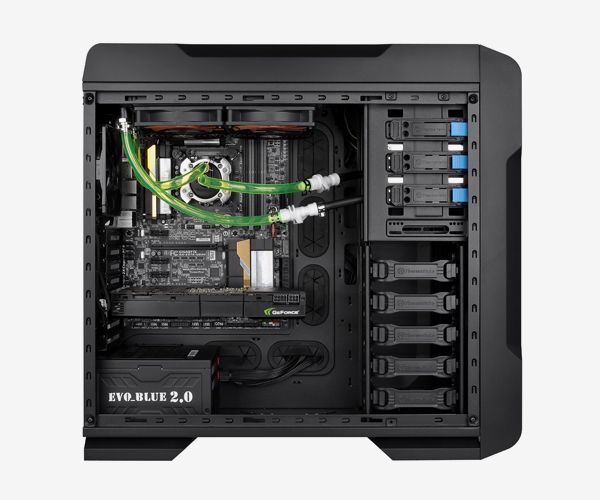 Integrated Thermaltake Liquid-Cooling Solution of Chaser A71 LCS chassis and CPU liquid cooling system Bigwater 850 GT, with Dual 5.25 drive bay design, featured with quick disconnect connector, 240mm motorsports radiator, and high performance liquid pump embody excitement and perform maximum cooling action.