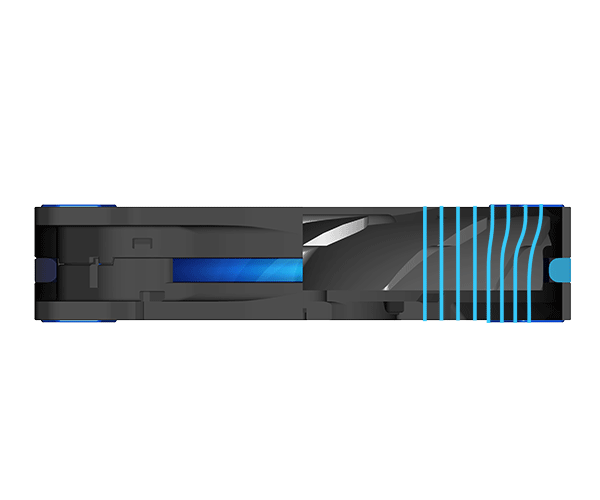 Aby osiągnąć maksymalną wydajność chłodzenia we wszystkich zastosowaniach, rama przeciwwiatrowa jest zaprojektowana tak, aby kierować strumień powietrza w kierunku środkowej części łopatki, tworząc w ten sposób efekt kompresji i blokując ucieczkę powietrza. Ta specjalna konstrukcja redukuje hałas i wibracje łopatek, tworząc idealną równowagę między mocą a hałasem.
